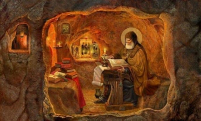 Τι ήταν; Ένα μικρό ποντίκι. Είχε ανεβεί στη μπαλωμένη και τρύπια παντόφλα του και μύριζε το μεγάλο δάκτυλο του ποδιού του. Έτσι αποσπάσθηκε η προσοχή του και ήταν αδύνατον να κρατήσει αμετακίνητο τον νου του, στην ενθύμηση του Θεού και στην προσευχή του.