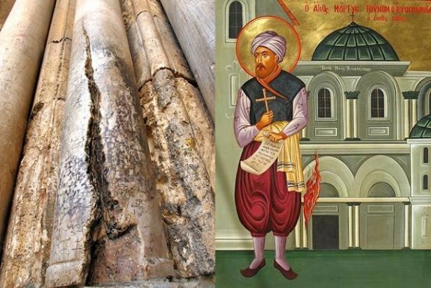 Το Μεγάλο Σάββατο του 1579, όταν οι Ορθόδοξοι εκδιώχθηκαν από τον Ναό της Αναστάσεως, η κολώνα στην είσοδο του Ναού σχίστηκε και το Άγιο Φως ξεπήδησε από μέσα της.