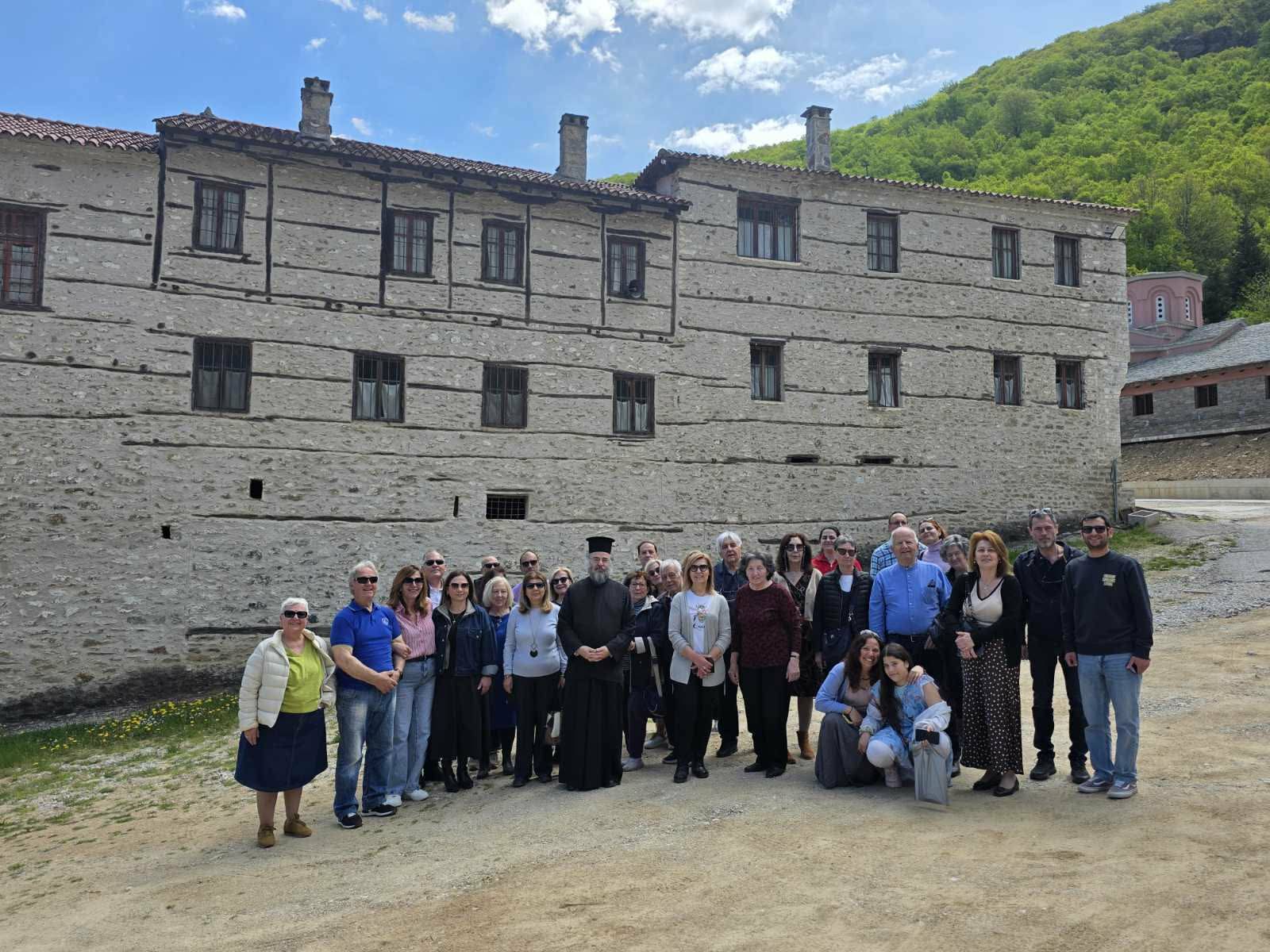 Το Σάββατο 25 Απριλίου ξεκινήσαμε νωρίς, στις 6 το πρωί, με χαρά και ανυπομονησία. Ο πρώτος μας σταθμός ήταν η Ιερά Μονή Αγίου Διονυσίου του εν Ολύμπω, ένα μοναστήρι βαθιά ριζωμένο στην ιστορία και την ασκητική παράδοση της Μακεδονίας.